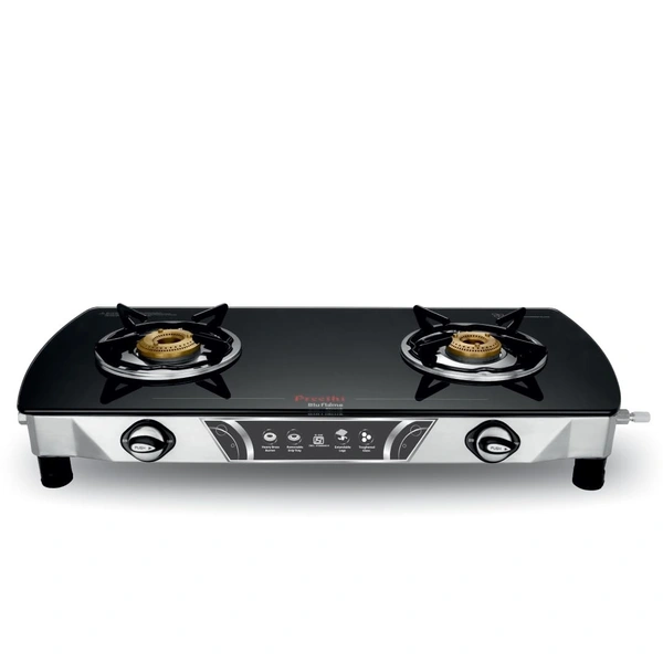 Preethi Bluflame Streak Plus Glass Top 2 Burner Gas Stove, with Jumbo Burner, Manual Ignition, Black GTS-405