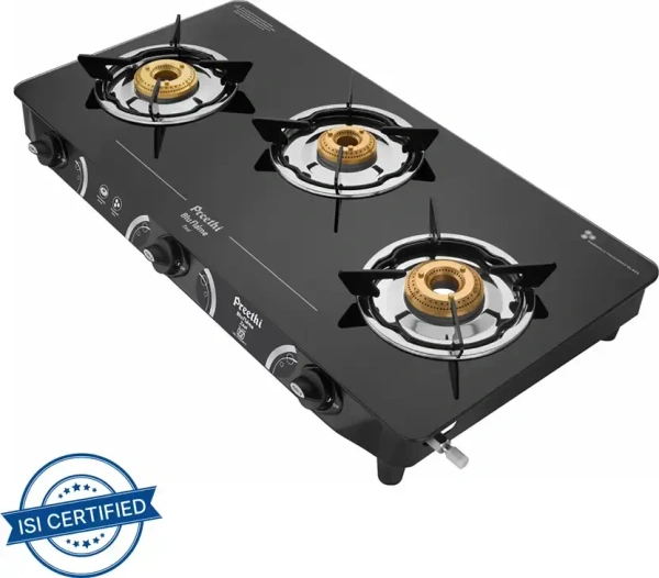 Cook faster, cleaner, and safer with the Preethi Zeal 3-Burner Gas Stove – ISI approved for reliability and long-lasting performance. Its sleek glass body and high-efficiency brass burners make it a perfect addition to every modern kitchen. 🍳✨